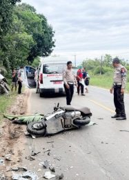 Personel Polsek Sebangau Datangi TKP Laka Lantas di Jalan Mahir Mahar KM 14