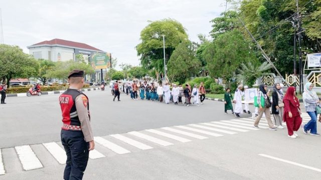 Personel Satsamapta Polresta Palangka Raya Amankan Pawai Tahrib Ramadhan