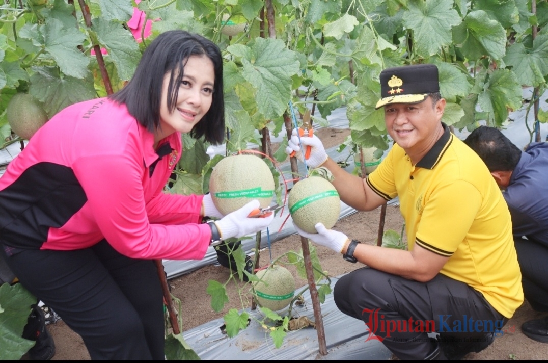 Kapolda Kalteng Bersama Bhayangkari Panen Melon Perdana di Lahan Pekarangan Pangan Lestari