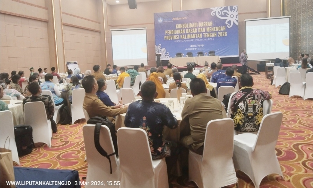 WWW.LIPUTANKALTENG.ID – PALANGKA RAYA ll Pemerintah Provinsi Kalimantan Tengah menegaskan komitmennya memperkuat mutu pendidikan melalui Konsolidasi Pendidikan Dasar dan Menengah Tahun 2026 yang digelar di Bahalap Hotel Jalan RTA Milono KM 1.3, Kelurahan Menteng, Kecamatan Jekan Raya, Kota Palangka Raya, Provinsi Kalimantan Tengah pada, Selasa (03/03/2026) siang.