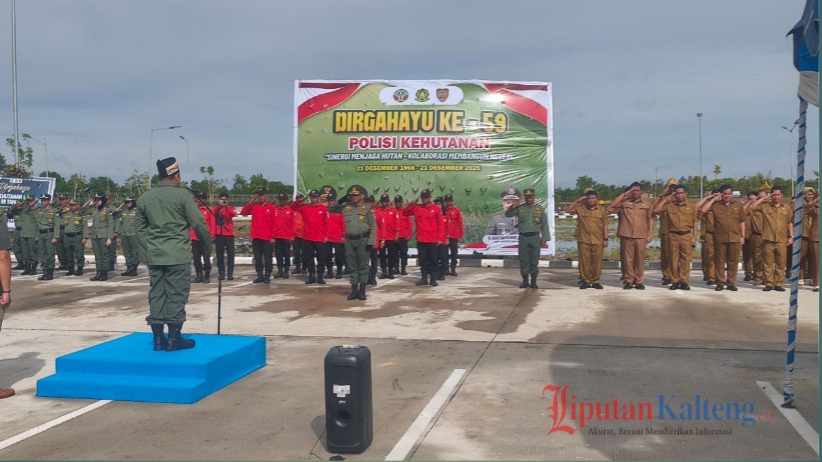 WWW.LIPUTANKALTENG.ID – PALANGKA RAYA || Dinas Kehutanan Provinsi Kalimantan Tengah bersama Unit Pelaksana Teknis (UPT) Kementerian Kehutanan menggelar upacara peringatan Hari Ulang Tahun (HUT) ke-59 Polisi Kehutanan (Polhut), Senin (29/12/2025).