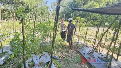 Di atas lahan seluas 30 x 40 meter, pemilik memanfaatkan tanah pinjam pakai tersebut untuk penanaman lombok (cabai) dengan media tanam menggunakan cangkul.